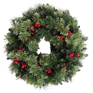 Senjie Artificial Christmas Wreath with Pine Cones and Red Berries,24 Inch Xms Decorations Unlit