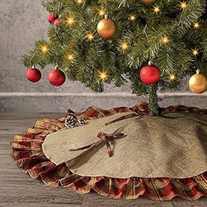 Ivenf Christmas Tree Skirt, 48 inches Large Burlap with Plaid Ruffle Trim Skirt, Rustic Xmas Tree Holiday Decorations