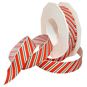 Morex Ribbon 80605/20-919 Candy Cane Stripes Grosgrain Ribbon, 7/8-Inch by 20-Yard, Holiday Red