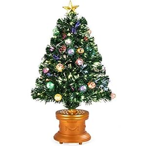 COSTWAY Artificial Tabletop Christmas Green Optical Fiber 90 Tips PVC with 26 Plastic Colorful Balls & Golden Star Premium Decorations Solid Base Full Tree (3ft)