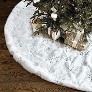 Christmas Tree Skirt – 48 inches Large White Luxury Faux Fur Tree Skirt Christmas Decorations Holiday Thick Plush Tree Xmas Ornaments (White/Sliver)