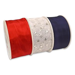 Morex Ribbon American Jewel Wired Polyester Ribbon (Pack of 3), 1-1/2″ by 12 yd, Red/White/Blue