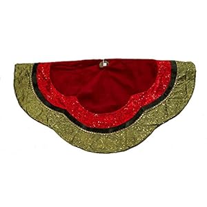 Kurt Adler Velvet and Silk Gold/Green/Red Scalloped Embroidered Sequin Treeskirt with Metallic Trim, 54-Inch