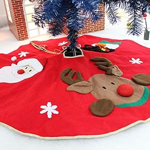 Amerzam Christmas Tree Skirt Mat Christmas Holiday Party Decoration (RED)