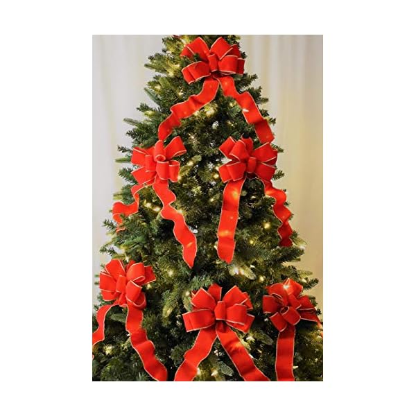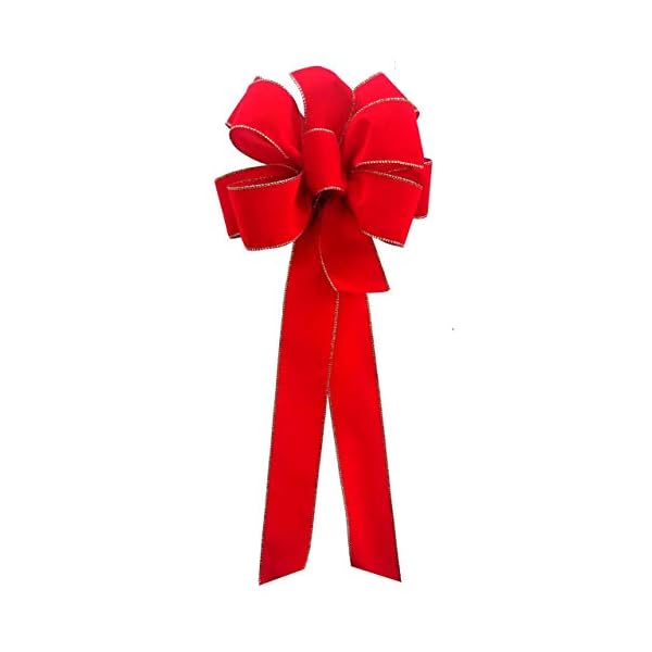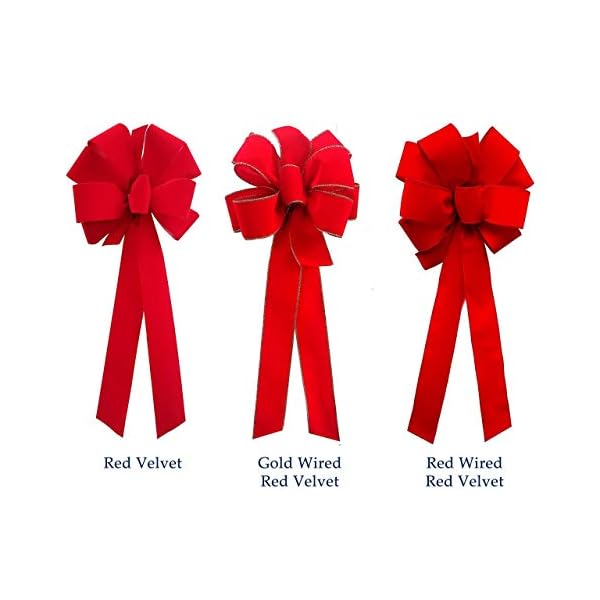 This pack Includes 12 sturdy Red Gold Wired Edge Bows (10″ Wide x 26″ Long with 2/20″ Tails) made with 18″ heavy gauge green florist wire, gold wired edge velvet waterproof ribbon, wired ready to decorate right out of the box. Our Christmas bows are Custom Packaged to ensure your bows arrive in perfect “Fluffy” condition. Free Shipping upon purchase.