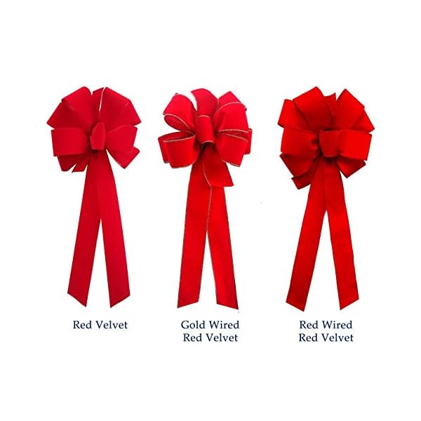 This pack Includes 12 sturdy Red Wired Edge Bows (10″ Wide x 26″ Long with 2/20″ Tails) made with 18″ heavy gauge green florist wire, gold wired edge velvet ribbon, wired ready to decorate right out of the box. Our Christmas bows are Custom Packaged to ensure your bows arrive in perfect “Fluffy” condition. Free Shipping upon purchase.