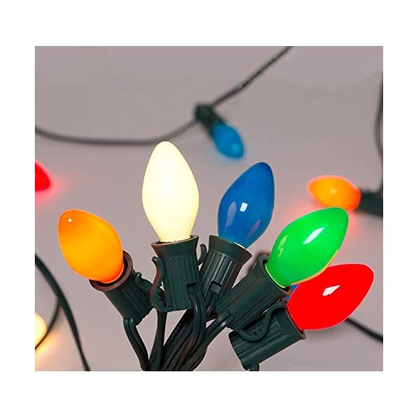 25FT Ceramic Christmas C7 Light String Lights with 27 Ceramic Multicolored Bulbs, which are perfect for special occasions, adding a multi-color and charming
