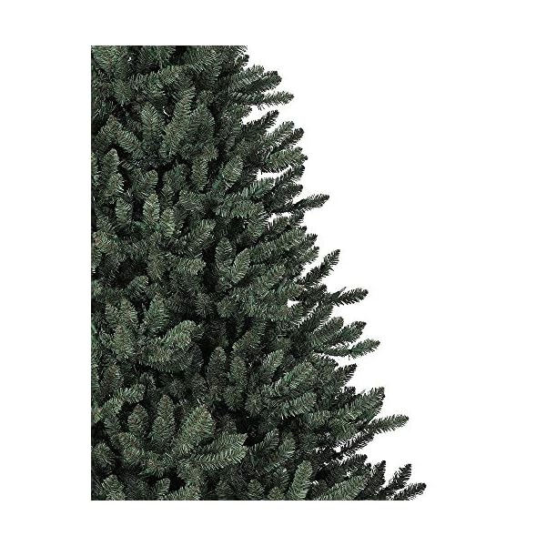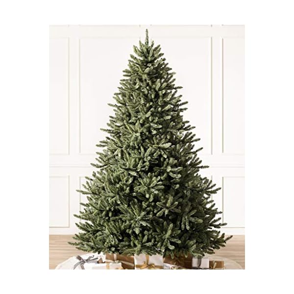Balsam Hill’s 6.5-foot Blue Spruce Artificial Christmas Tree features a full profile with sleek, multi-toned PVC Classic Needle foliage. Its light gray, blue-green, and moss green needles are complemented by sturdy branches in a brown hue. Compressed for shipping, the tree requires some time to shape the branches.