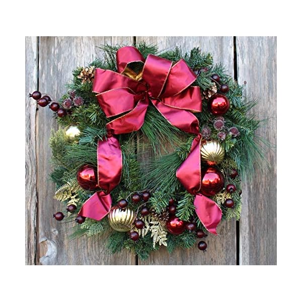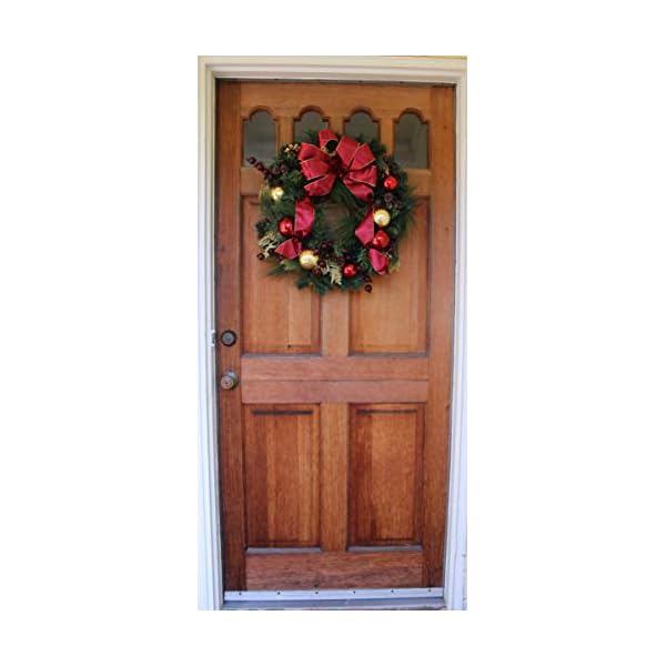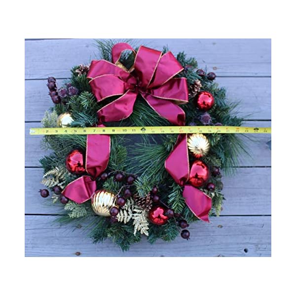 MEASURES TRUE TO ADVERTISED SIZE – Unlike other wreaths, this wreath is true to measurement and doesn’t dissapoint in size. This decorated artificial christmas wreath measures 22 inches across diagonally by 6-7 inches deep.