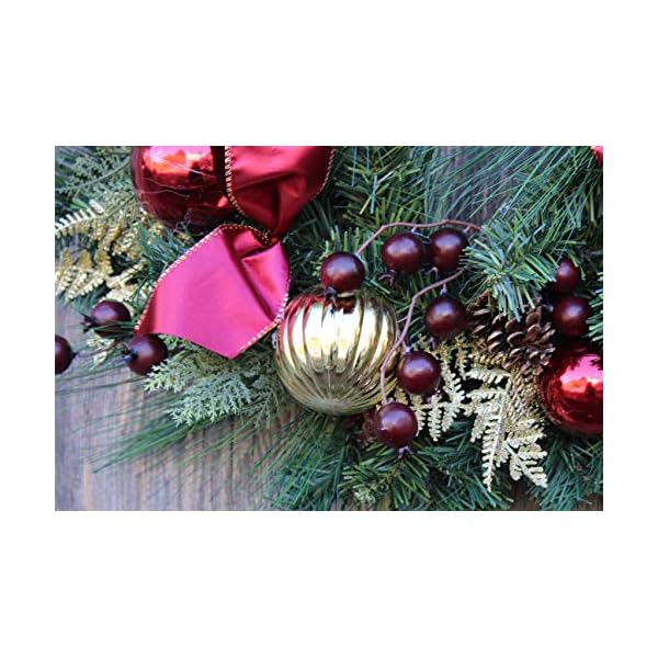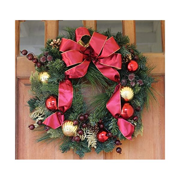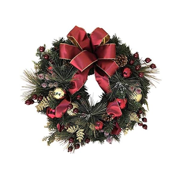 INVITING XMAS WREATH TRANSFORMS DOOR DECOR – The elegant combination of silk evergreen, berries and pinecones, and ornaments and a large bow are sure to transform your door for the season. Impress with the full Christmas door wreath!