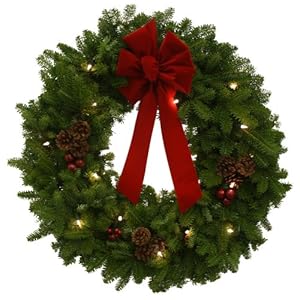 Worcester Wreath 24-Inch Classic Pre-Lit Maine Balsam Wreath