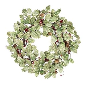 Senjie Artificial Christmas Wreath with Pine Cones and Red Berries,24 Inch Xms Decorations Unlit