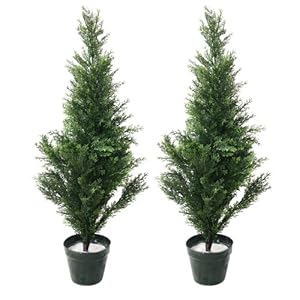 Pure Garden 34 Inch Artificial Cedar Tree – Large Faux Potted Evergreen Plant for Indoor or Outdoor Decoration at Home or Office (Set of 2)
