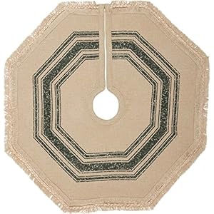 VHC Brands Holiday Decor – Vintage Burlap Stripe White Tree Skirt, 21 Diameter, Green